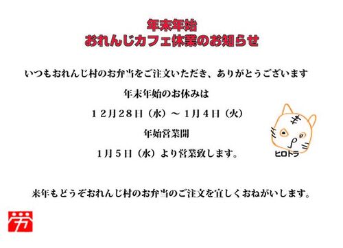 今年1年ありがとうございました。 1月5日(水)から弁当が始まります。 来年もどうぞよろしくお願いいたします。