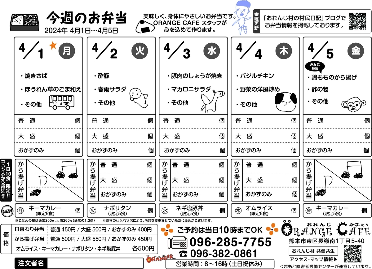 おれんじかふぇの日替わり弁当のご注文お待ちしております。