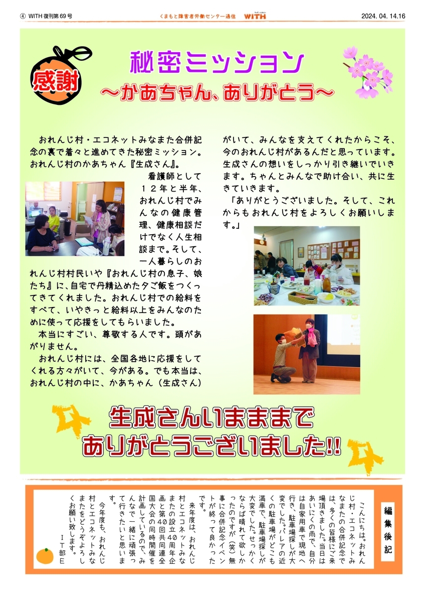 今年度も、おれんじ村とエコネットみなまたをどうぞよろしくお願い致します。